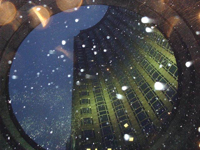 | It was snowing in NYC. The vertical and horizontal aspects clash nicely with the snow. | |