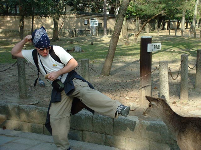 I went to Japan w/ my pal Larke in 2002 and took some uncool photos. (Except for when the deer attacked... and I threw my camera to Larke so she could document the devistation. That's her lens handiwork.) Deer AttackAll images are documented and commented, so be careful, or you might learn something about the best culture in the universe. Be sure to witness Water Salad; salivate over the sushi conveyor belt and delight in the deer attack. All images © 2008 uncoolcentral dot com. Want a print-worthy high-res version of a picture? Drop me an email and I'll hook you with a free non-comercial license. You just have to find my email address. Enjoy.